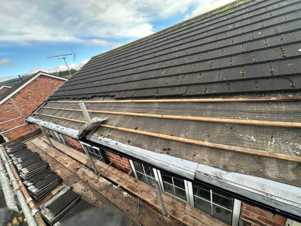 apex-roofing-full roof- re- batten-and felted-with-a-dry ridge-kit-in maccelfield
