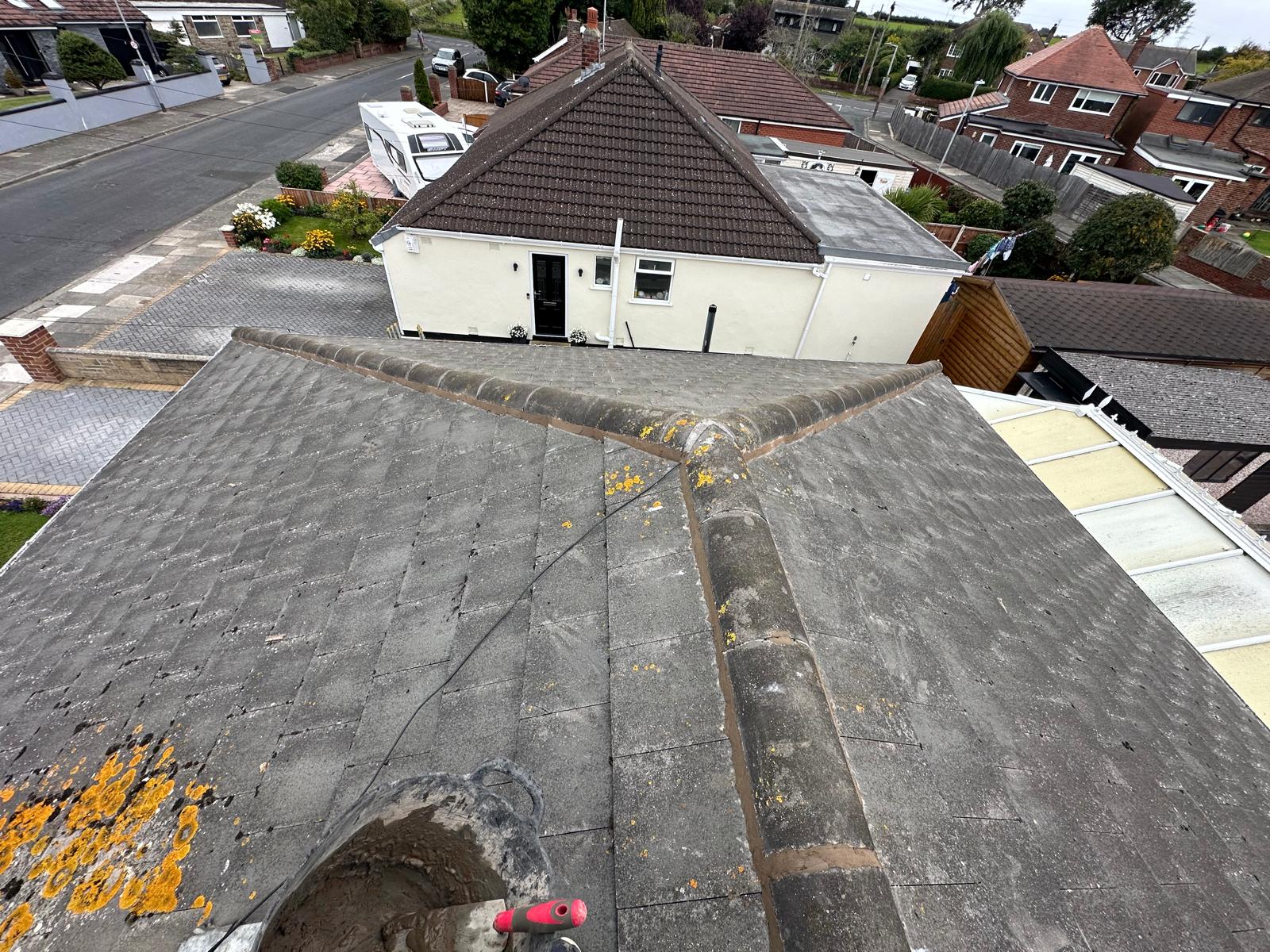 Ridge tile and mortar repointing
